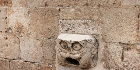 Dubrovački maskeron na pročelju Franjevačkog samostana Male braće prikazuje sovu koja odolijeva vremenu i bezbrojnim nogama koje je svakoga dana dotiču. Nekoć je služio za odvod vode s krova crkve, ali danas više ne ispunjava tu funkciju.