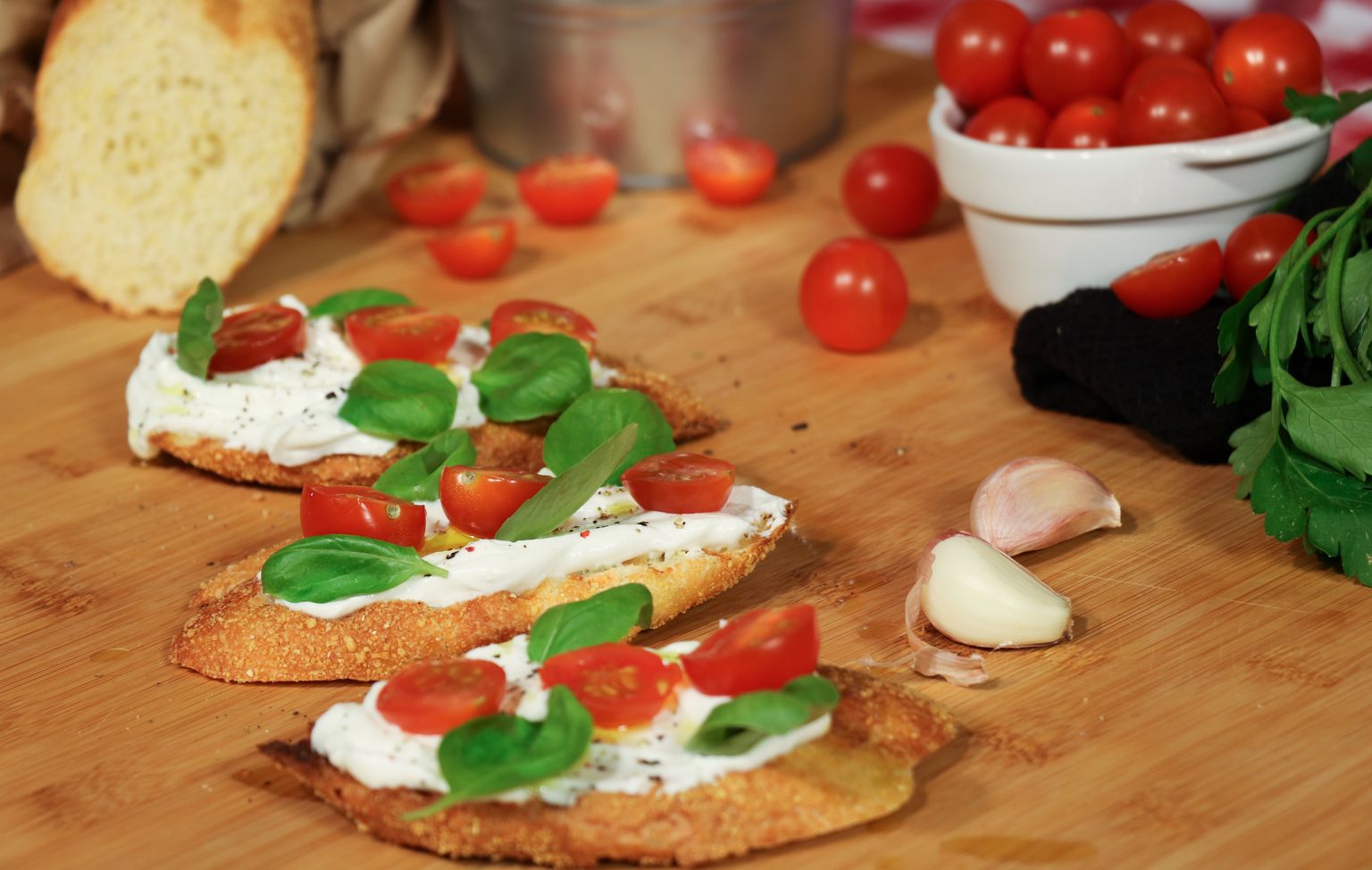 Bruskete s quarkom, cherry rajčicama i bosiljkom Foto: (Foto: Anamaria Batur) -