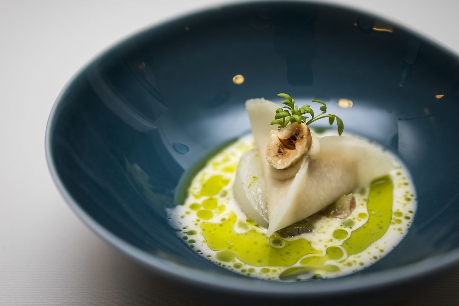 • Ceviche od brancina s kremom i raviolima od daikona, javorovim sirupom, limetom i uljem od peršina Foto: Losinj Hotels and Villas