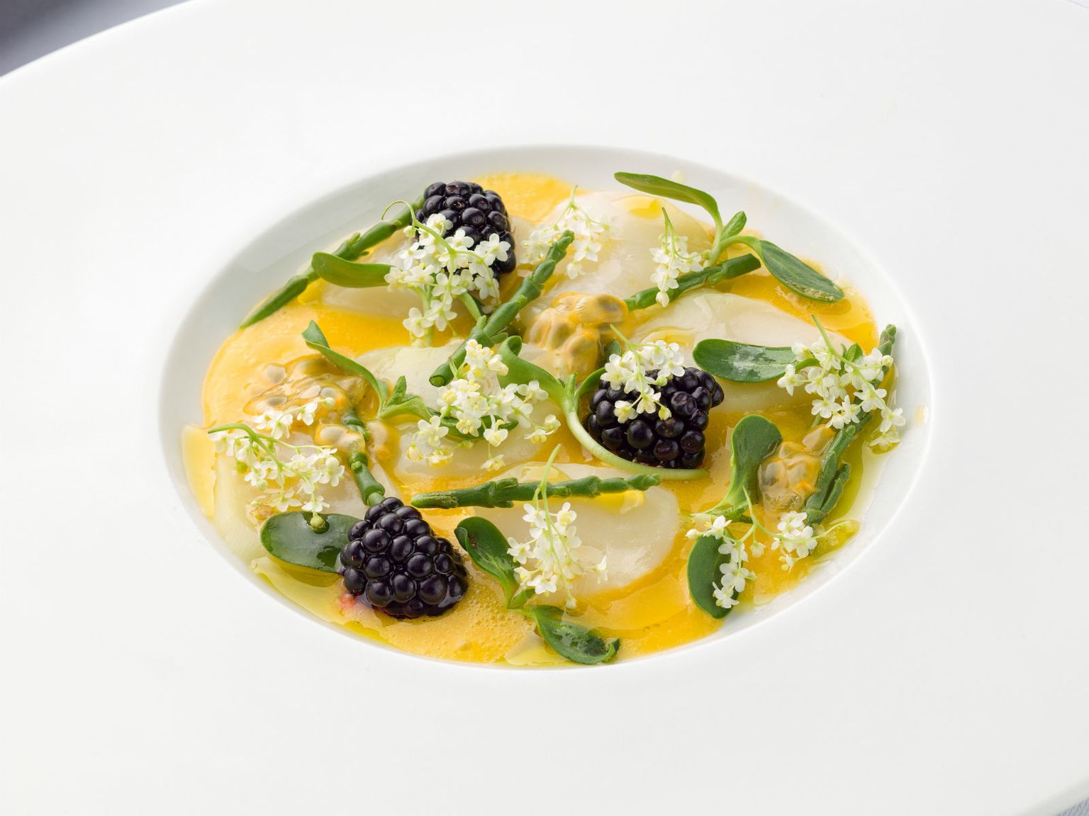 • Dimljeni hlap, tartar od šparoga, krema od sojinog mlijeka i sušene bazge Foto: Arhiva hotela Esplanade