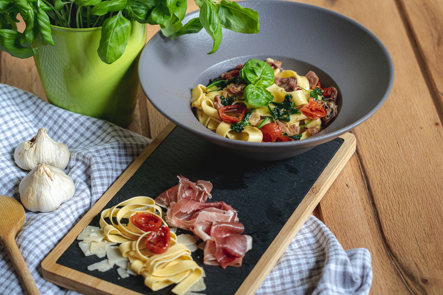 Pola sata do savršenstva: Recept za tagliatelle s pršutom, sušenim rajčicama i špinatom