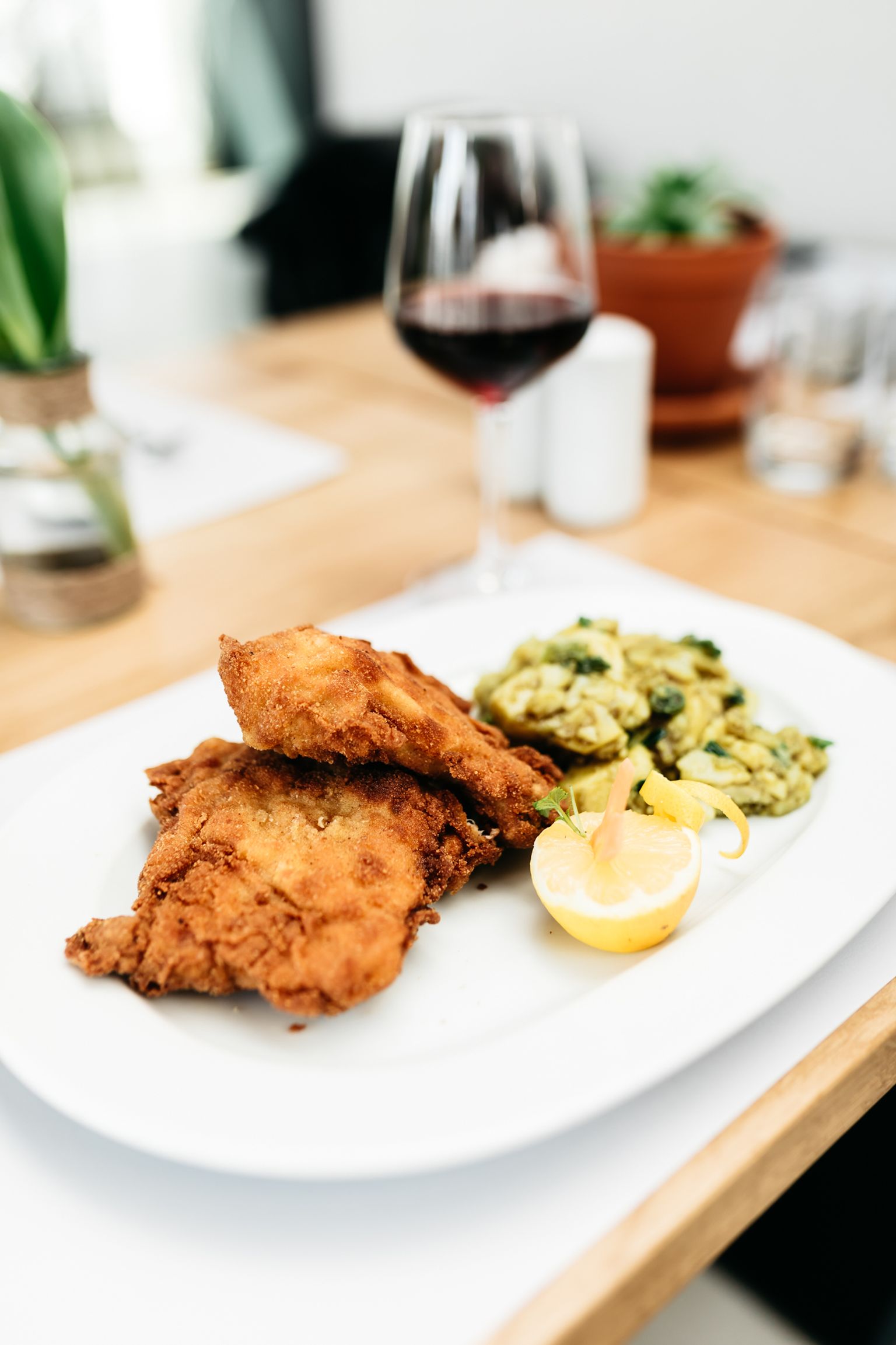 • Pohana piletina, krumpir salata s bučinim uljem Foto: Restoran Tajer