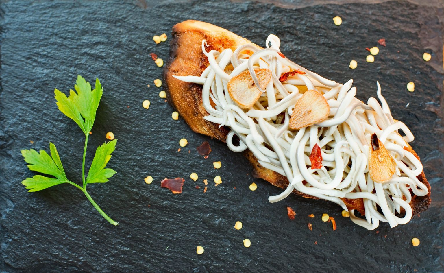 • Mlade jegulje u Španjolskoj se najčešće poslužuju na kruhu sa češnjakom i čilijem Foto: Guliver / Thinkstock / Profimedia.hr