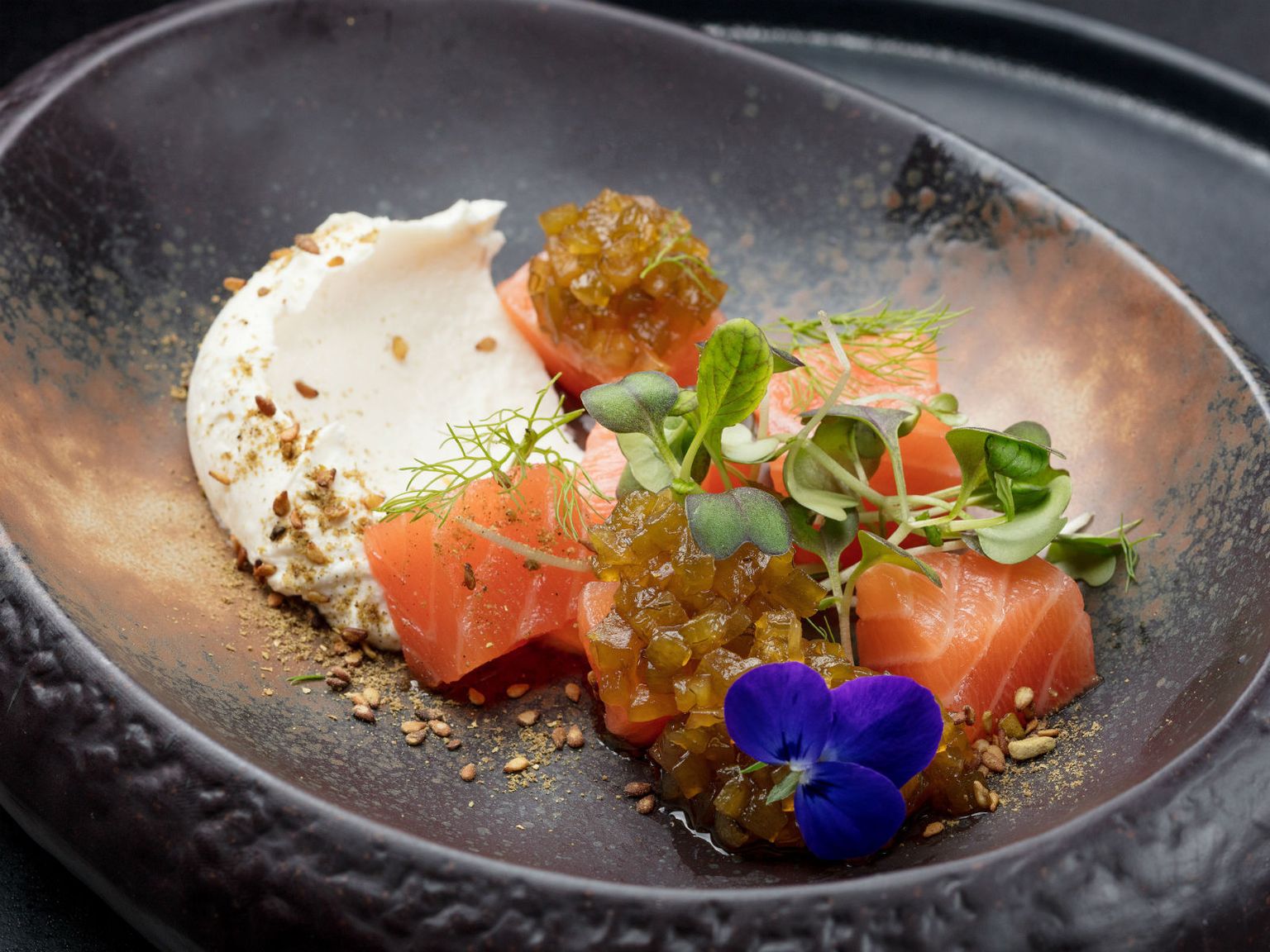 • Marinirani losos jogurt marmelada od krastavaca i kopra zaatar Foto: Hotel Esplanade Zagreb