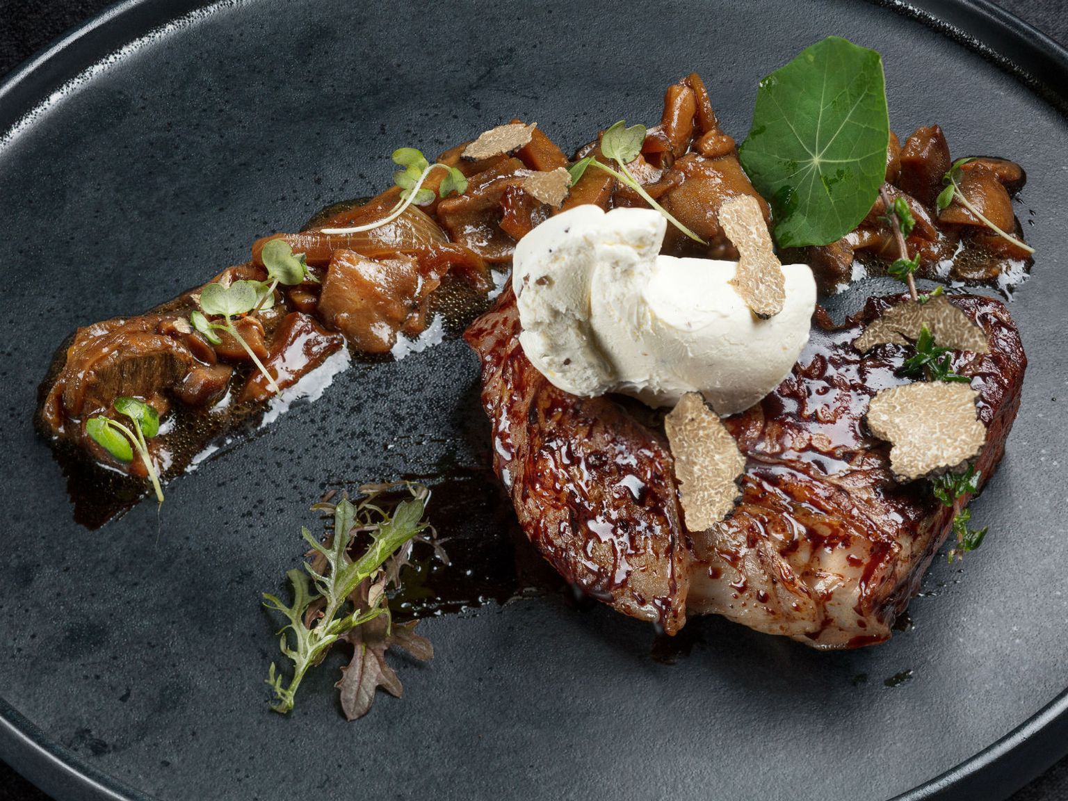 • USA striploin, maslac s tartufima, ragout od gljiva Foto: Hotel Esplanade Zagreb