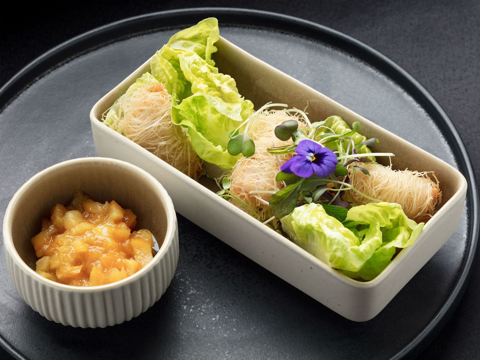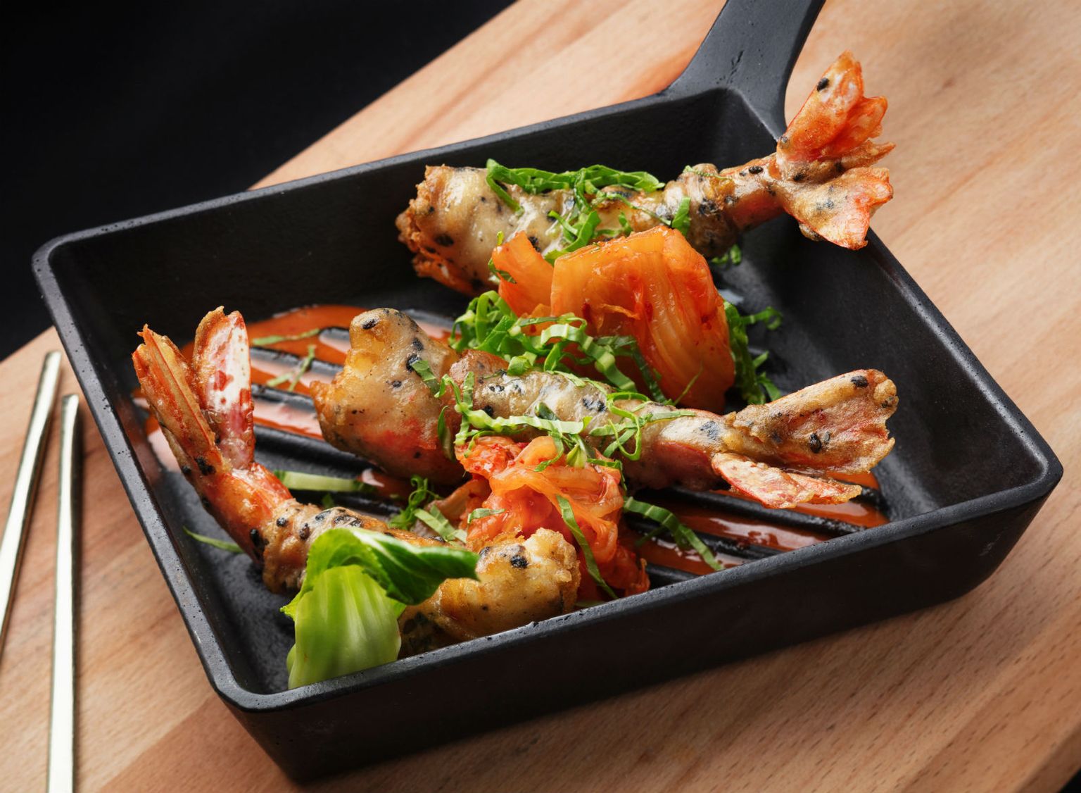 • Repovi crvenih kozica u tempuri od rižinog brašna kimchi klice soje Foto: Hotel Esplanade Zagreb