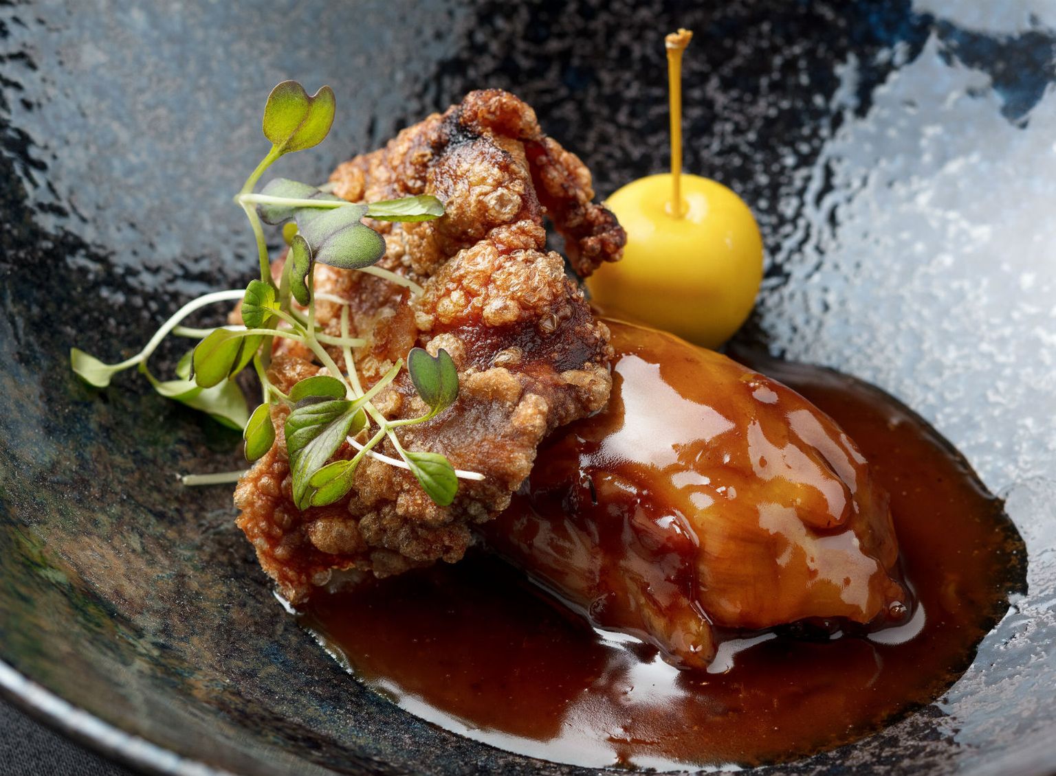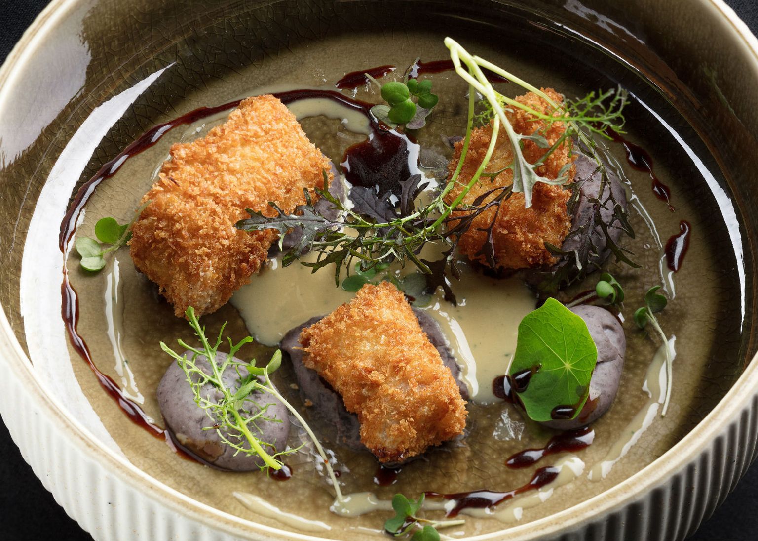 • Pržene teleće brizle, gusta krema od crnog graha i tahini umak Foto: Hotel Esplanade Zagreb