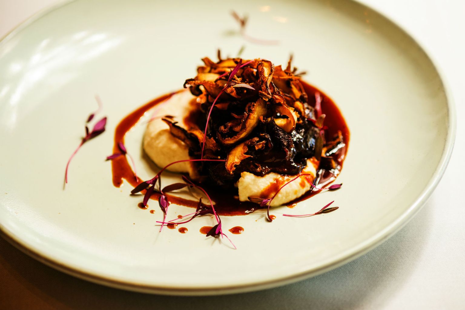 • Teleći obrazi u gustom umaku od porta, hrskave shiitake gljive, krema od celera Foto: Hotel Esplanade Zagreb