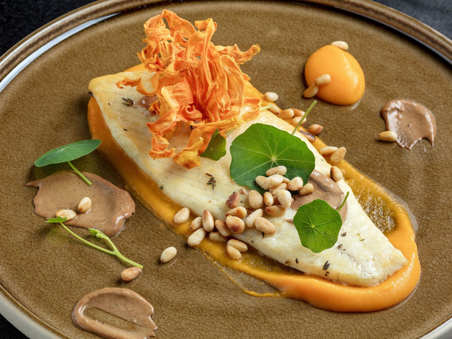 • Dimljeni file romba, crni češnjak, pinjoli slatka krema od mrkve Foto: Hotel Esplanade Zagreb