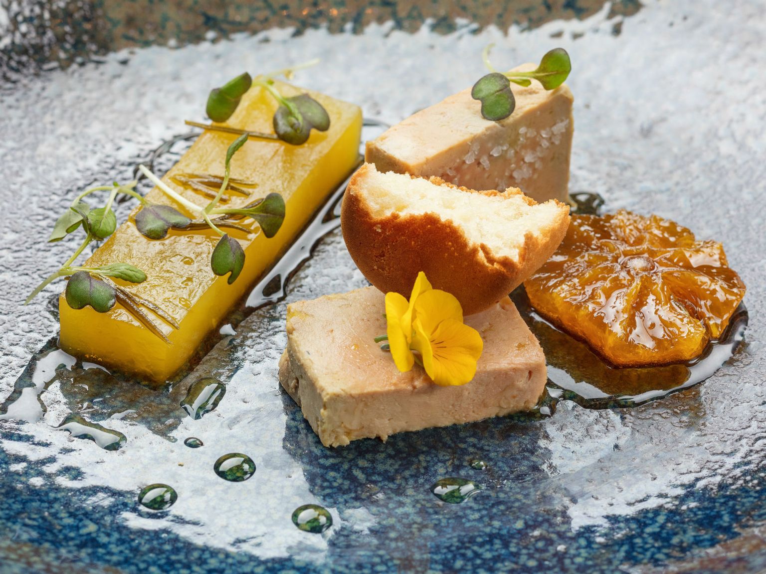 • Terina od guščje jetre, žele od naranče, brioš od lavande i umak od meda Foto: Hotel Esplanade Zagreb
