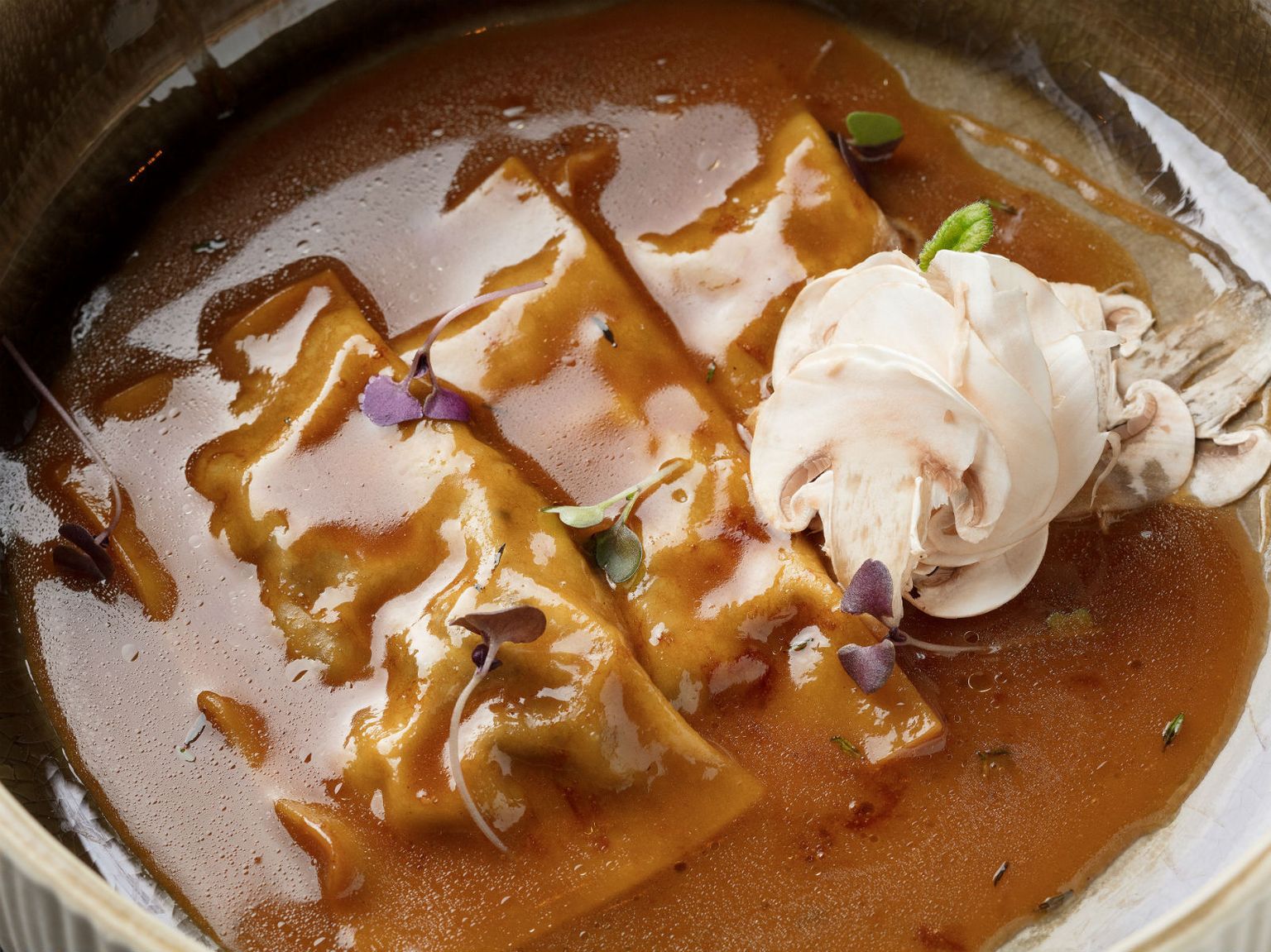 • Jastučići punjeni raguom od gljiva, gusti consommé od gljiva Foto: Hotel Esplanade Zagreb