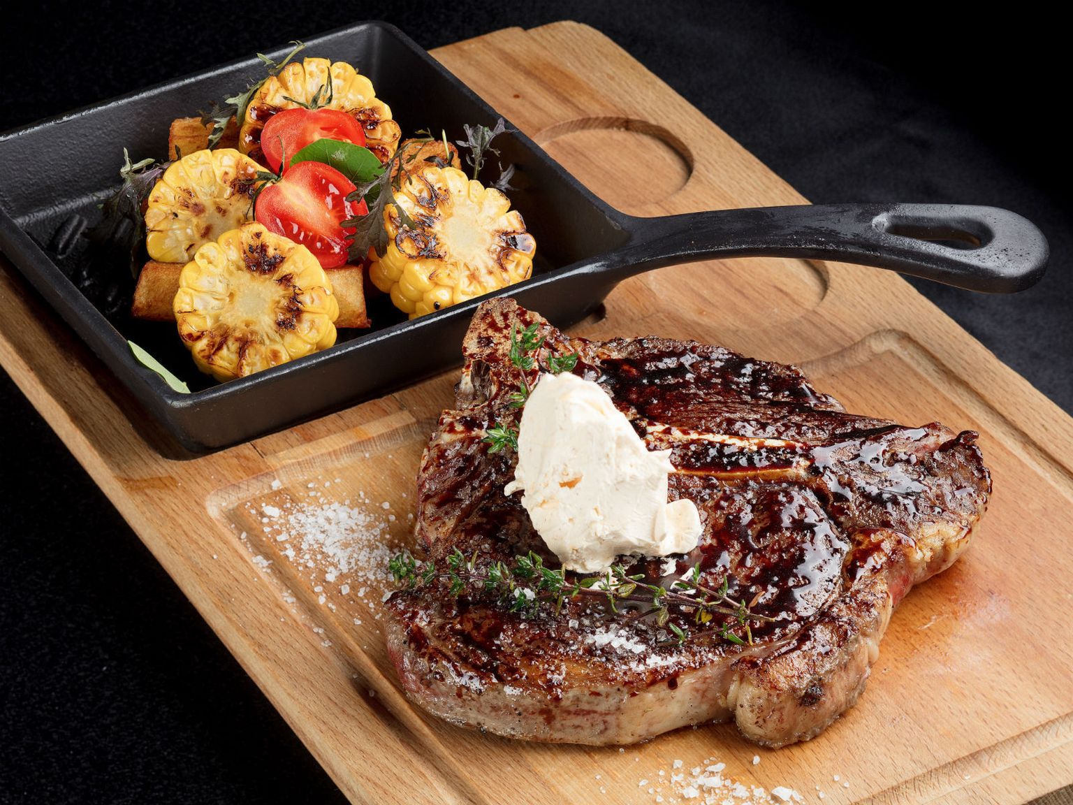 • Juneći T-bone (500 gr), pečeni kukuruz krumpir čili maslac Foto: Hotel Esplanade Zagreb