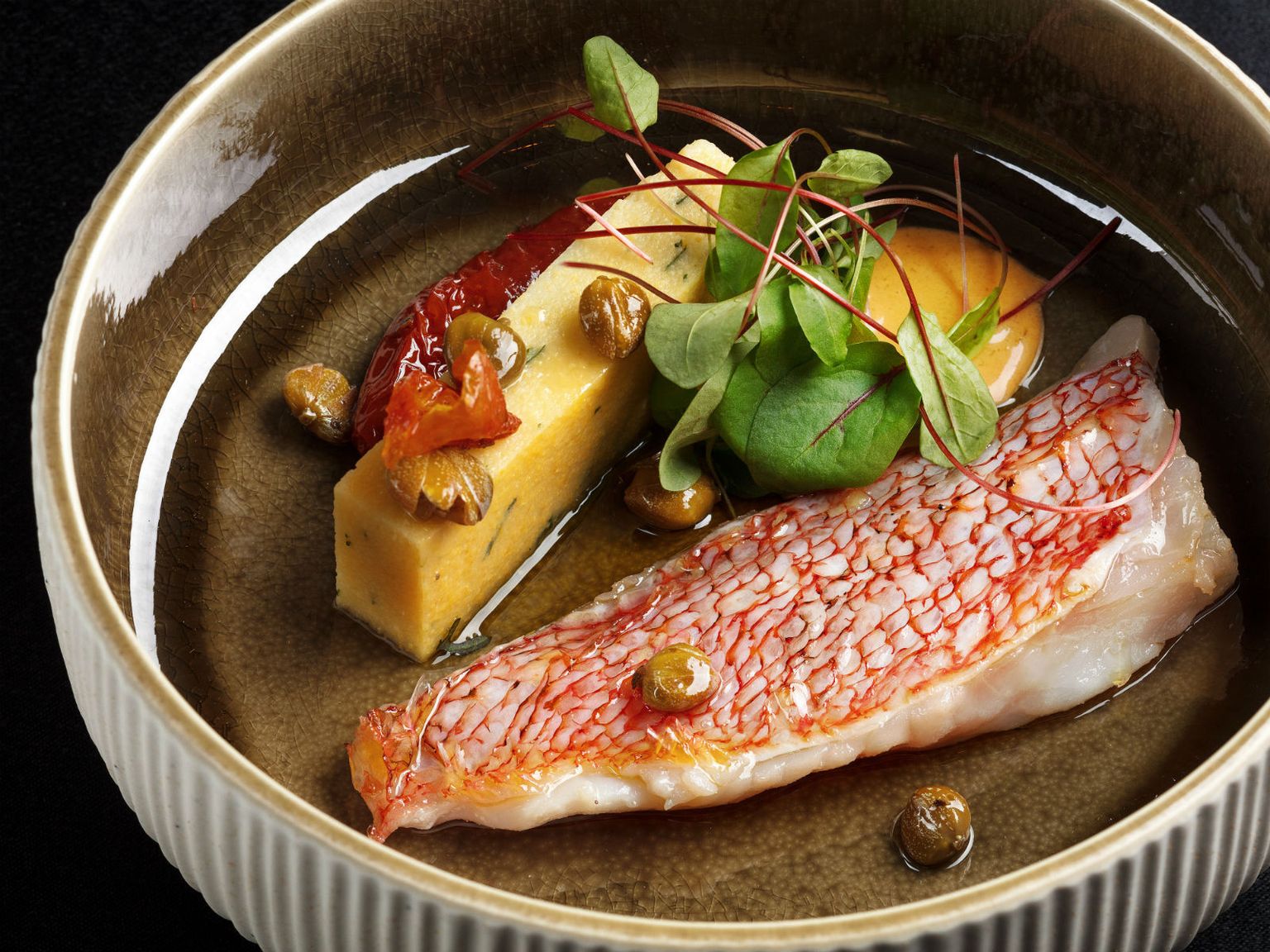 • File škarpine, umak od sušene rajčice i začinskog bilja te pečena palenta Foto: Hotel Esplanade Zagreb