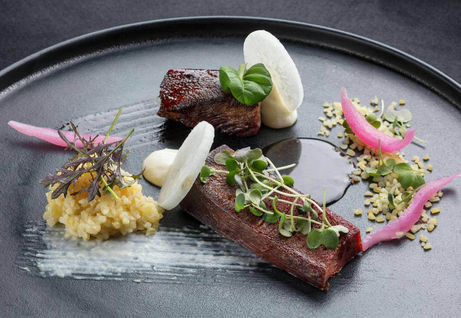 • Marinirani goveđi jezik, krema od hrena i dimljeni bulgur Foto: Hotel Esplanade Zagreb