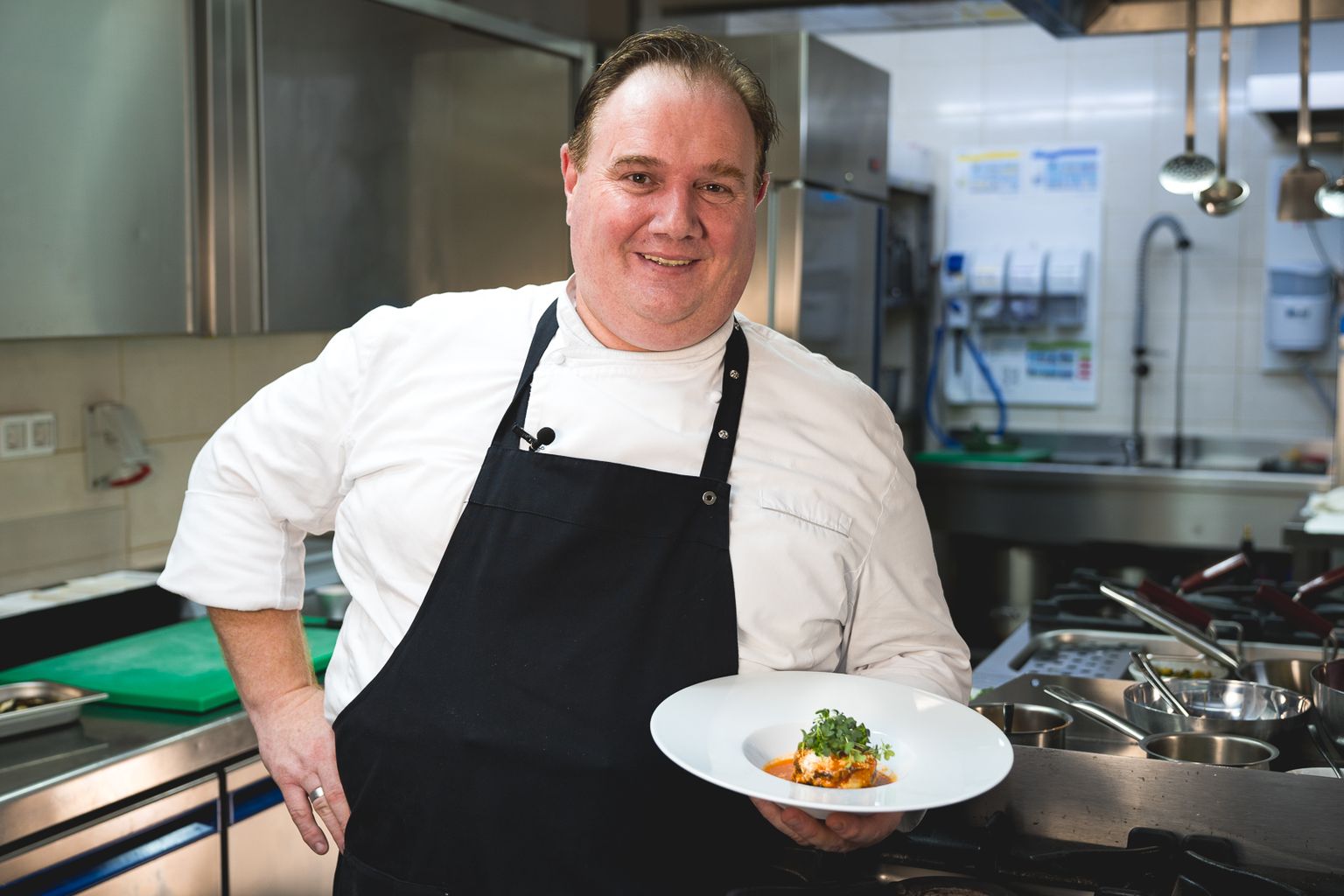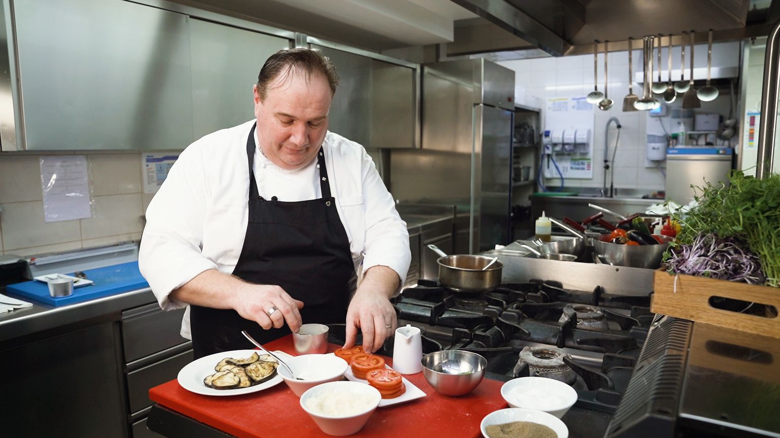 • Stefano Cosattini sa svojom torticom od patlidžana i rajčice s parmezanom Foto: Sandro Sklepić