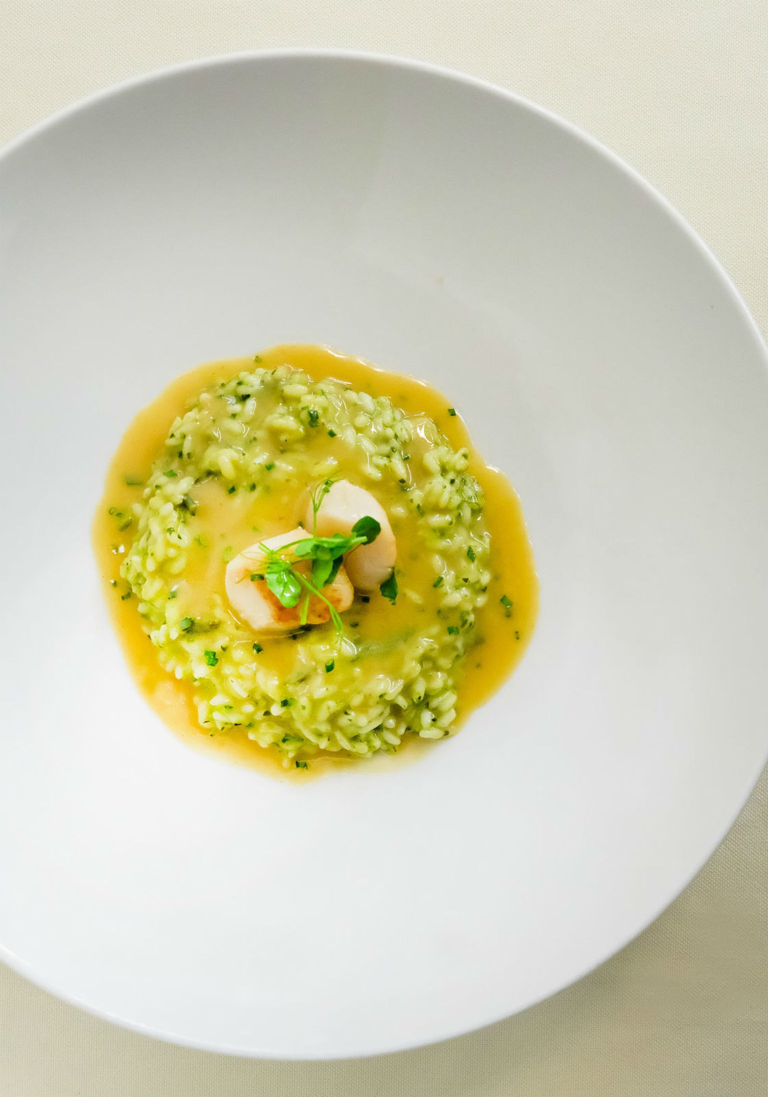 • Rižooto sa šparogama, medvjeđim lukom i jakobovim kapicama Foto: Rajna Raguž Photography